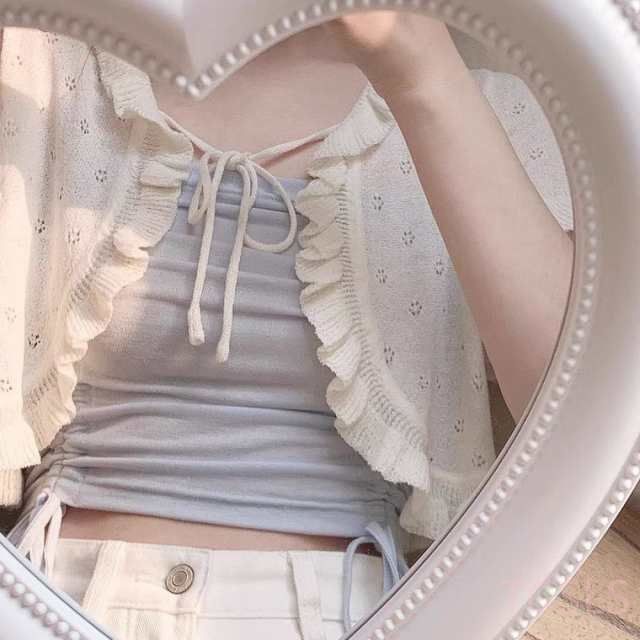 半袖 カーディガン サマー カーディガン 夏 半袖カーディガン レディース シアーカーディガン サマーニット 袖フリル ショート丈 透かし編み 薄手