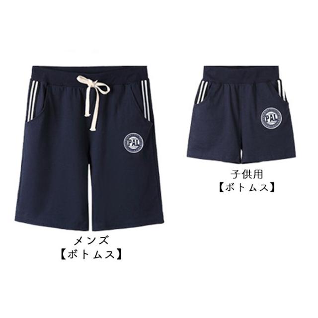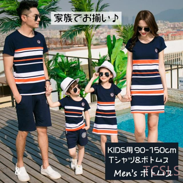 親子ペアルック Tシャツ ショートパンツ 家族お揃い リンクコーデ 子供用 女の子 男の子 キッズ ジュニア ベビー メンズ 半袖 ボーダー 短パン