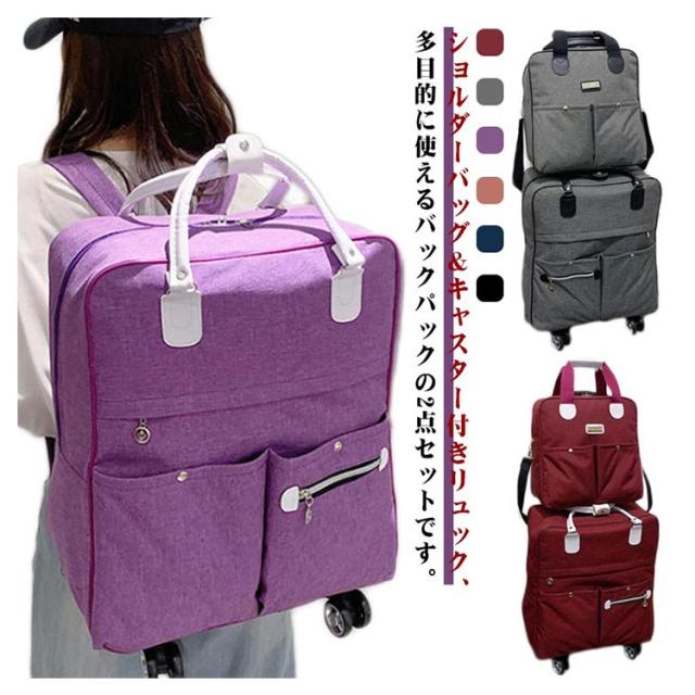 | ショルダーバッグ&キャスター付きリュック、多目的に使えるバックパックの2点セットです。 耐久性に優れたオックスフォード、水を弾く撥水加工。 2WAY機内持ち込み可! 旅行、ビジネス、出張、登山、通勤通学等に最適。 旅行や遠出、釣りや登山などの趣味にも大活躍、収納ポケットが多数装備。 チケットや手帳など小物を入れ、カード、小物収納ポケットも充実しています。 プレゼントにもピッタリです。 | |