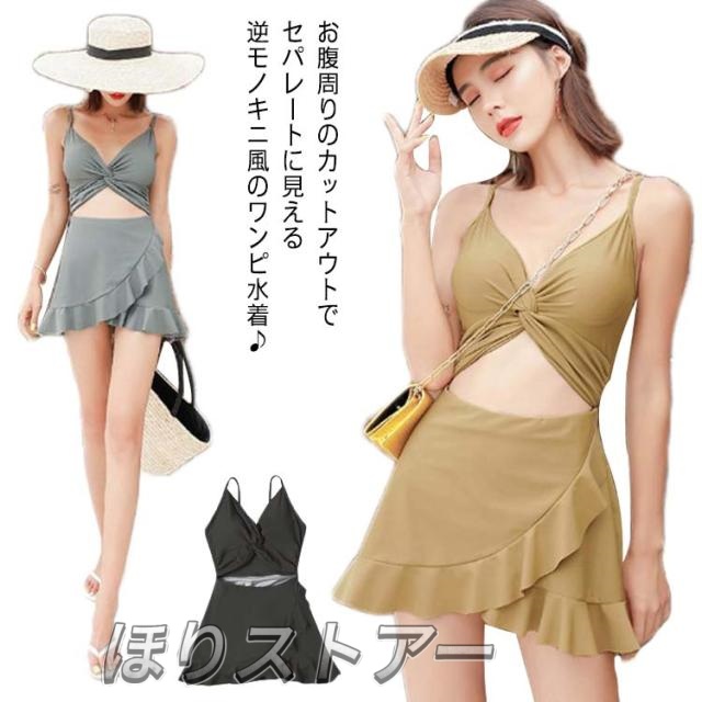| お腹周りのカットアウトでセパレートに見える逆モノキニ風のワンピ水着♪ 胸元ツイストデザインで谷間キレイ魅せ♪ 大人かわいいカラバリで体型カバーしつつお洒落に肌チラ見せstyle。 ハイウエストで下腹部・ぽっこりおなかもカバーします。 ワンピースタイプですが、おなかにへそ上が開いたデザインで、前から見るとビキニ風になります。 風に揺れるレースで体型カバー・細見え効果を発揮させて海水浴、プール、ビーチ、リゾート、デートに…恋人やお子様、家族と。 春夏だけでなく、秋冬の海外旅行用にも活躍します。 | |