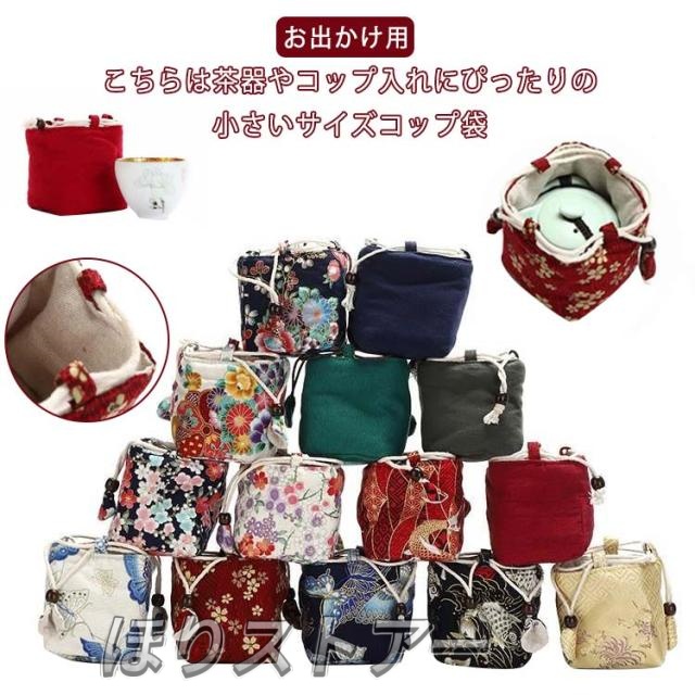 巾着 陶器 コップ入れ カンフー茶 運び 屋外持ち 収納バッグ 和柄 ポーチ コットン お出かけ用 コンパクト 厚手 お出かけ用 巾着袋 おしゃれ 綿 コップ袋 送料無料 手作り風 小さめ ミニ 事務室用 旅行 茶道具