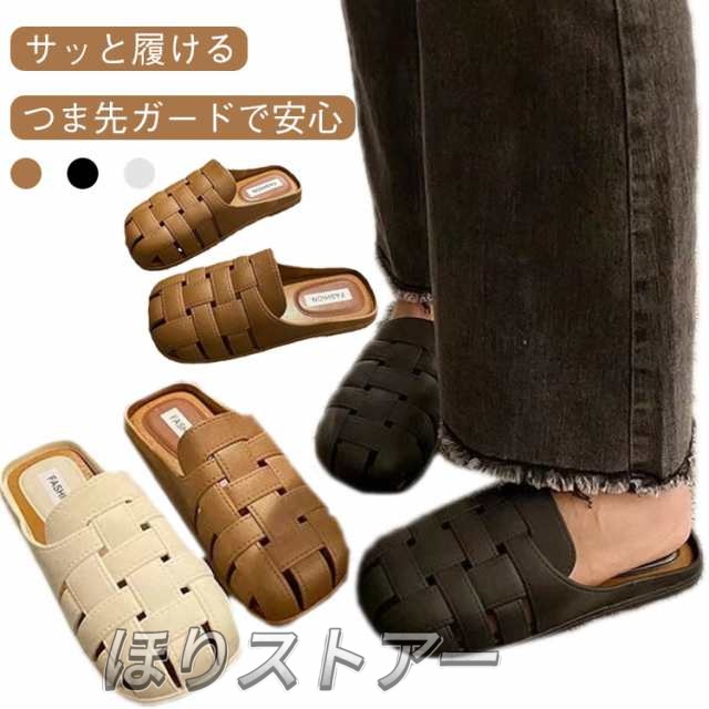 ミュールサンダル スリッパ サンダル レディース つま先あり ミュール 夏用 ミュールサンダル レディース スリッパサンダル 外履き 編み上げ