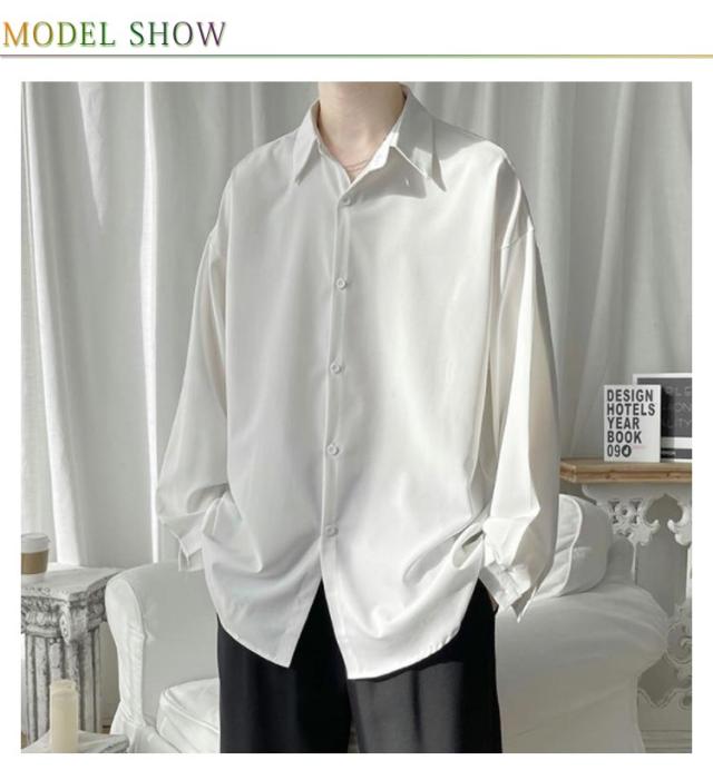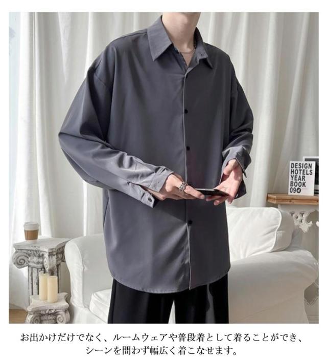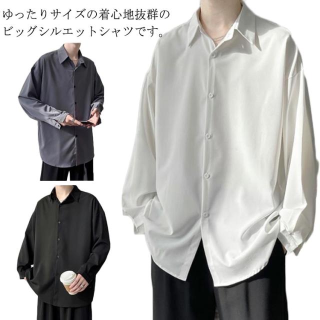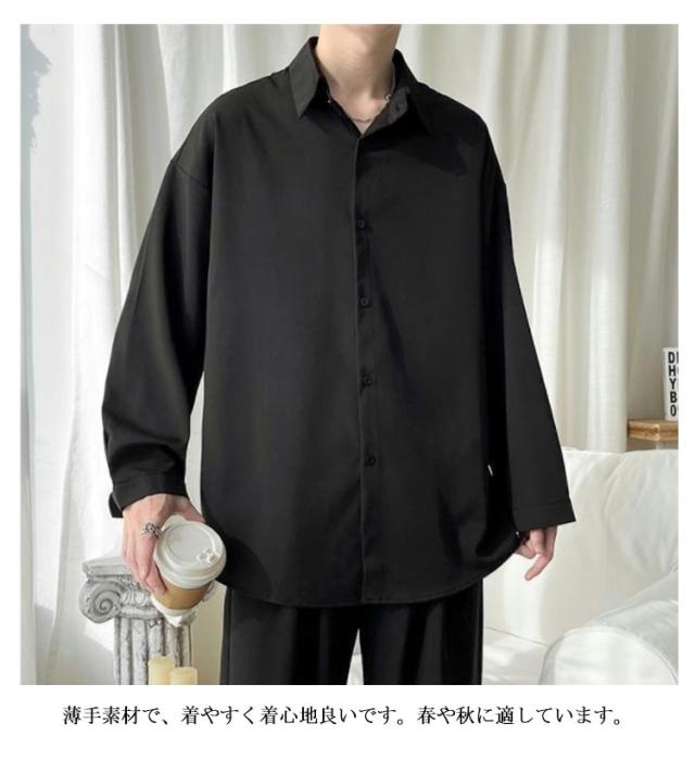 メンズ シャツ 長袖 カジュアルシャツ 春 夏 秋 爽やか ワイシャツ 送料無料 大きいサイズ 韓国 軽い 柔らかい ゆったり オーバーサイズ ビッグシルエット ストリート系 ドロップショルダー