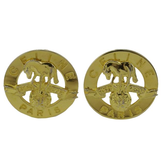 【ウィンターSALE★30%OFF】セリーヌ CELINE イヤリングロゴサークル ホース 馬 ゴールド レディース 中古