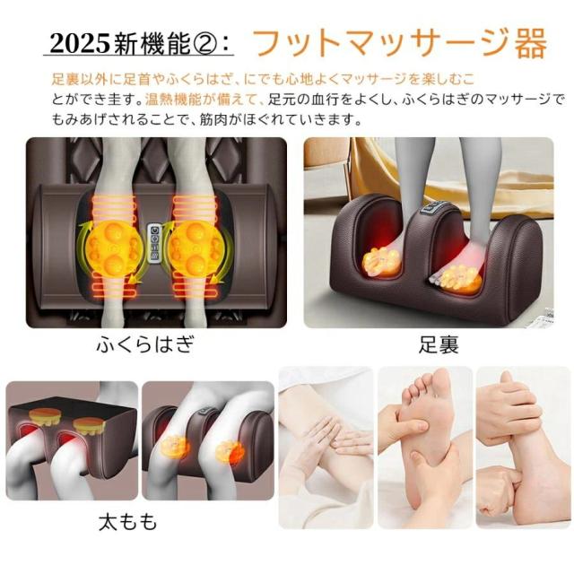 【フットマッサージ器】 足裏以外に足首やふくらはざ、にでも心地よくマッサージを楽しむことができ圭す。温熱機能が備えて、足元の血行をよくし、ふくらはぎのマッサージでもみあげされることで、筋肉がほぐれていきます。