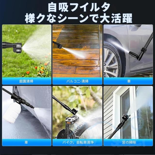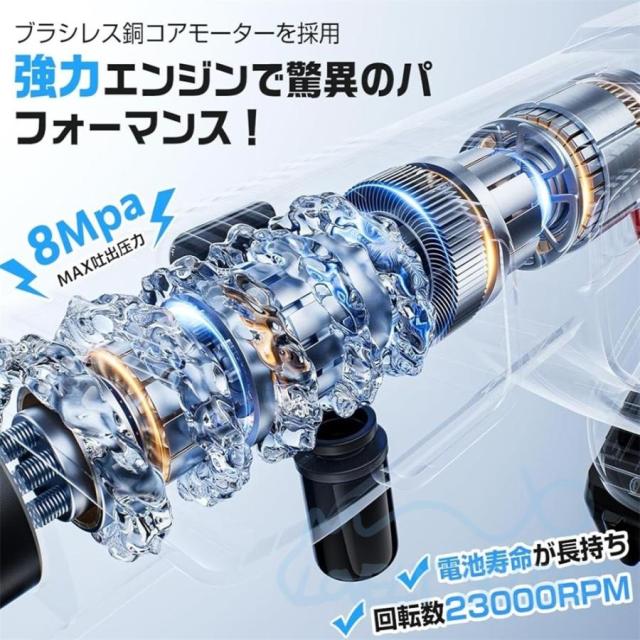 2025 電動高圧洗浄機 充電式 コードレス 8MPa 6in1ノズル 電力量表示 ブラシレスモーター マキタバッテリー対応 水道接続 自吸式 3段階速度調整 軽量