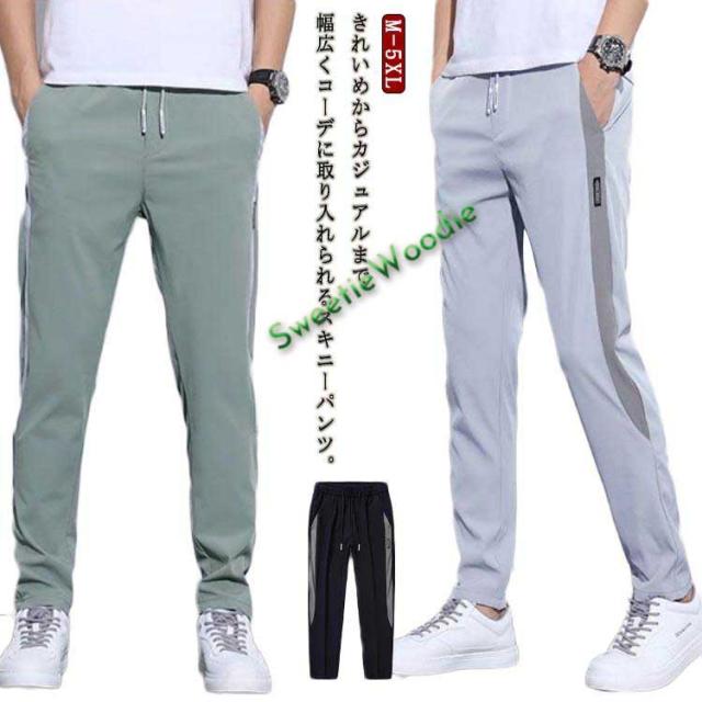 メンズ 2タイプ! スポーツ イージーパンツ 薄手 ワークパンツ 2タイプ! ストレッチパンツ 無地 おしゃれ スキニーパンツ 接触冷感 チノパン ア
