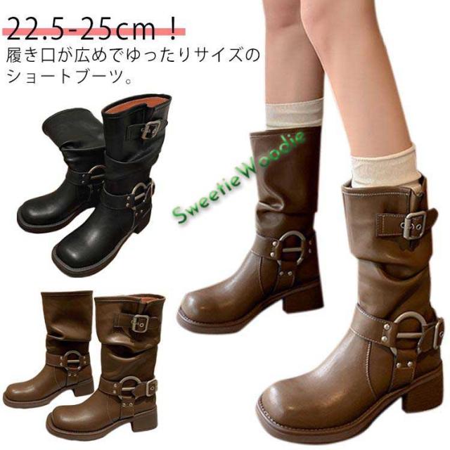 靴 ブーツ レディース エンジニアブーツ ゆったり おしゃれ 厚底 エンジニアブーツ 滑り止め ブラウン 歩きやすい ショートブーツ ワイド カジュア