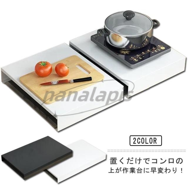 ガスコンロ コンロ上 カバー 作業台 作業スペース キッチン作業台 調理スペース 一時置き ステンレス キッチン 台所 収納 隙間収納 油はねガー 食材置き コンロガード キッチン収納 鍋置き 一人暮らし ホワイト ブラック