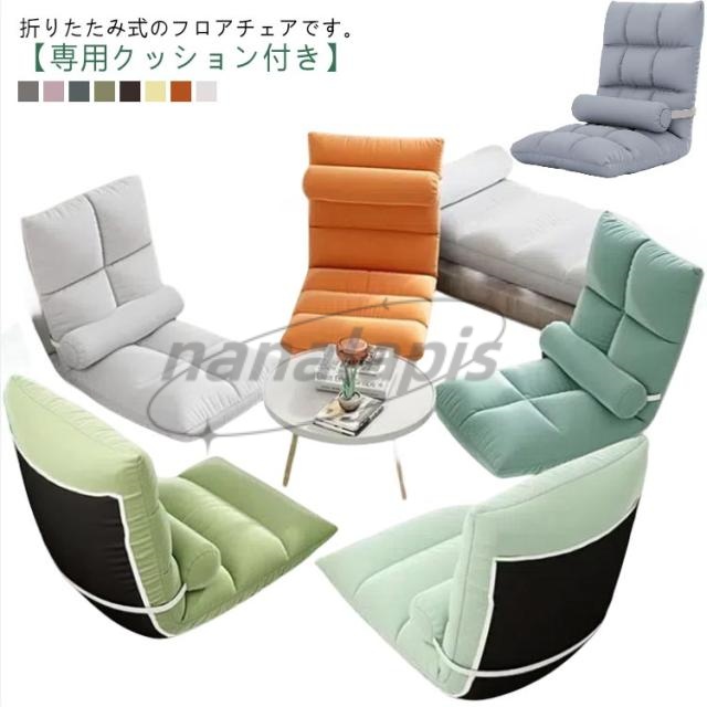 | 折りたたみ式のフロアチェアです。【専用クッション付き】 背もたれは5段階調整可能なので、好みの角度にこまかく調整できます。フルフラットにすればお昼寝にもぴったりです。 折りたためば隙間に収納もできます。 付属の専用クッションは枕や肘置きにもなります。 落ち着いたカラーでどんなインテリアとも合わせやすいので、リビングにも寝室にも和室にもピッタリですね。 場所をあまりとらないので一人暮らしの方にもおすすめです☆ | |