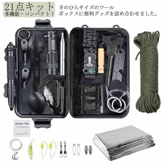 サバイバルキット 21点キット サバイバルグッズ サバイバルセット ツールセット サバイバルナイフ マルチツール コンパクト 軽量 防災グッズ ライト 焚き火 アウトドア キャンプ 野外活動 ケース付き