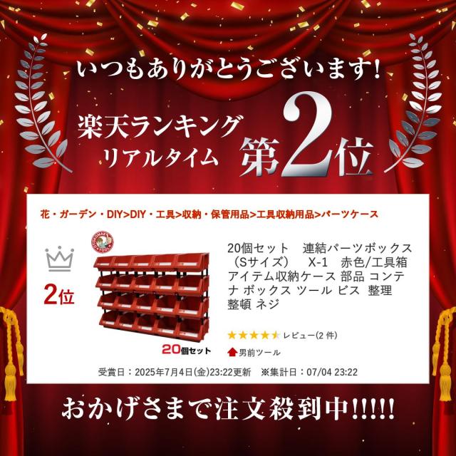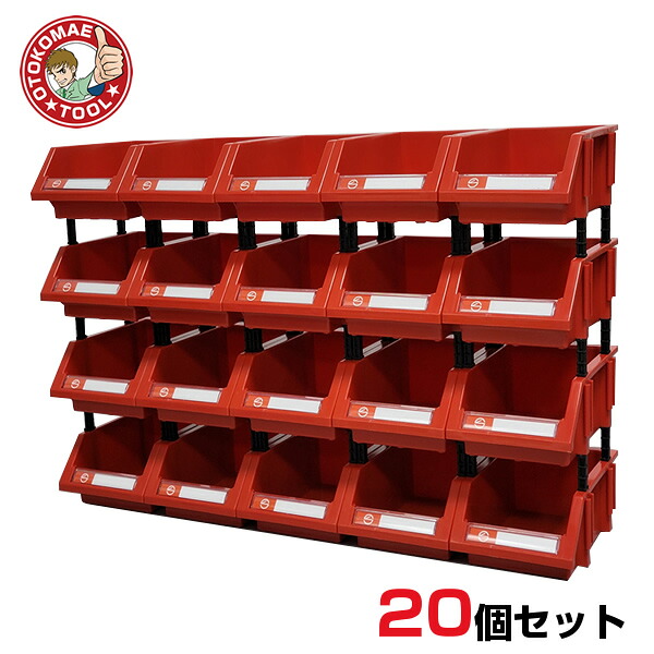 20個セット 連結パーツボックス(Sサイズ) X-1 赤色/工具箱 アイテム収納ケース 部品 コンテナ ボックス ツール ビス 整理整頓 ネジ
