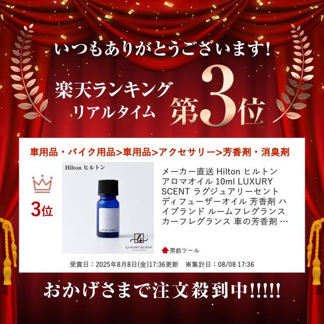 メーカー直送 Hilton ヒルトン アロマオイル 10ml LUXURY SCENT ラグジュアリーセント ディフューザーオイル 芳香剤 ハイブランド ルームフレグランス カーフレグランス 車の芳香剤 香水 高級 ※代引・返品不可