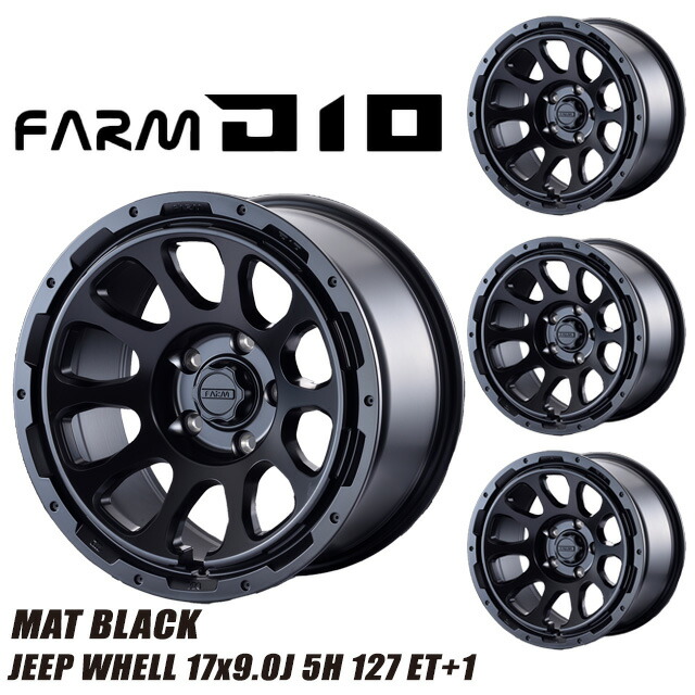 メーカー直送 モーターファーム ホイール JEEP D10 (ディーテン) マットブラック 17x9.0J 5H 127 ET+1 4本セット ※代引不可・返品不可モーターファーム ジムニー カスタム パーツ タイヤ・ホイール