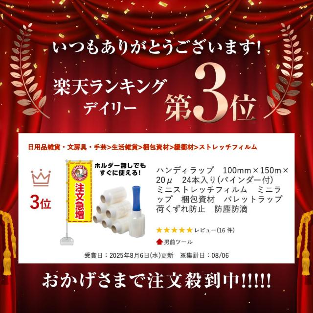 ハンディラップ 100mm×150m×20μ 24本入り(バインダー付) ミニストレッチフィルム ミニラップ 梱包資材 パレットラップ 荷くずれ防止 防塵防滴