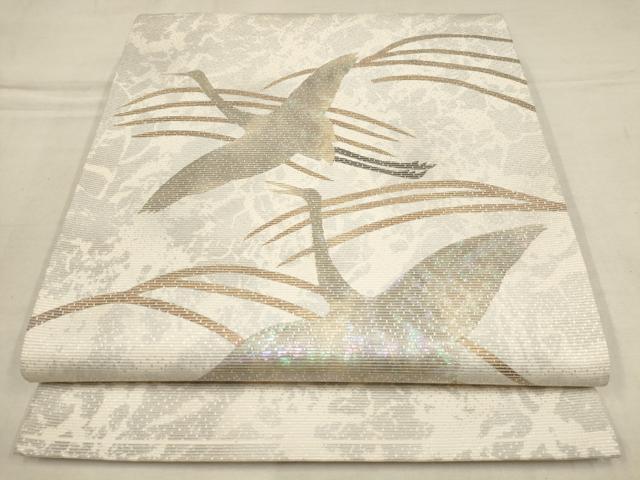 平和屋着物▼太鼓柄袋帯 螺鈿箔 鶴 引箔 正絹 逸品 AAAY9484wj