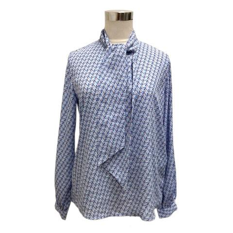 【中古】ナラカミーチェ NARA CAMICIE ブラウス カットソー ボウタイ付き リボン 幾何プリント 総柄 長袖 0 ライトブルー レディース