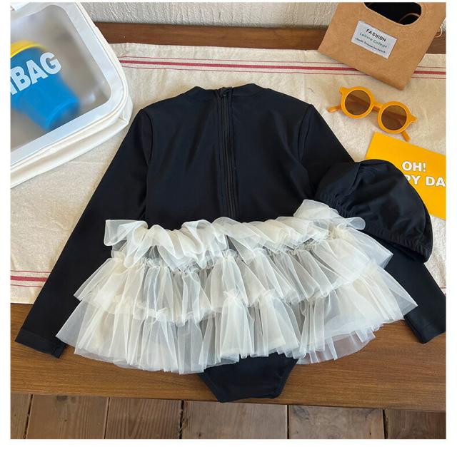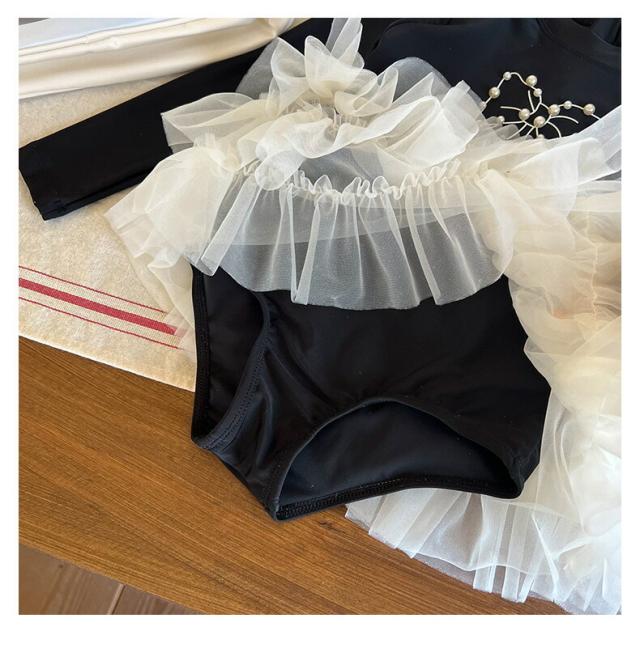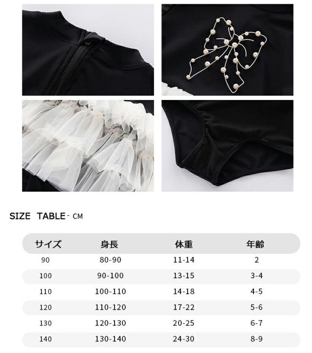 スクール水着 女の子 ワンピース 長袖ブラック子供水着 女の子ミズギワンピース140 スクール水着女児プール 海水浴 スイミング夏 水遊び110cm 可愛い 幼稚園 小学生 中学生 みずぎUPF50+