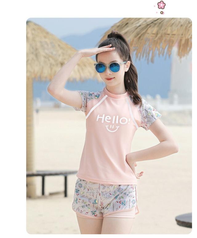 キッズ 水着 女の子 セパレート 2点セット ジュニアスクール水着 高校生 ラッシュガード セット 半袖 可愛い スクール水着 みずぎ お パットあり