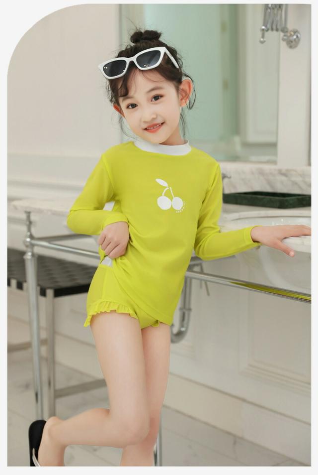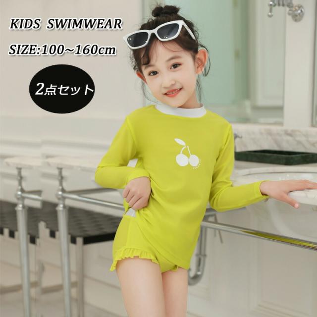 子供 女の子 水着 ラッシュガード セパレート 長袖スクール水着キッズ 女の子低校生女の子 可愛い女の子みずぎ ビキニセパレート スイミング プール小学校イエロー100110120 長袖おしゃれ