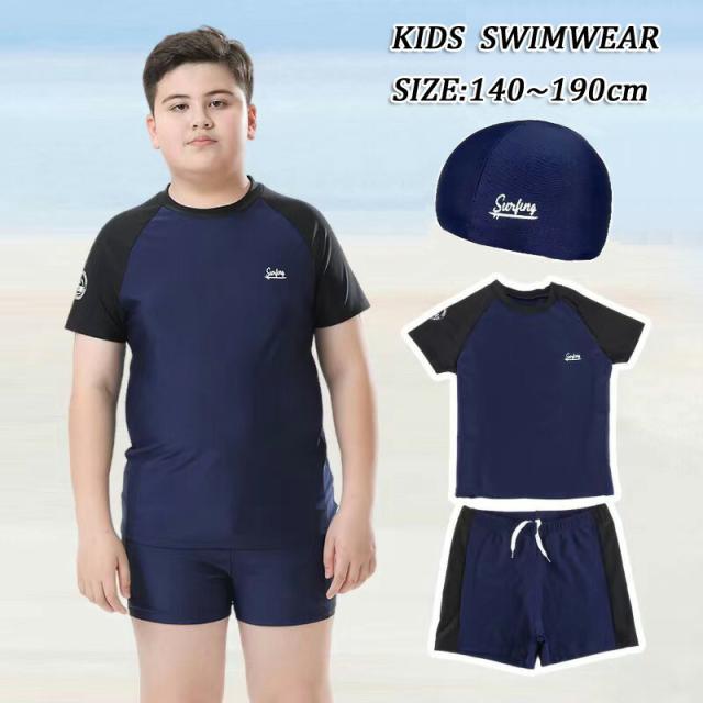 キッズぽっちゃり男の子 小学生 セパレート大きい水着子供 水着 男の子 おしゃれ大きいサイズミズギスクール水着無地メンズみずぎ上下セット半袖プール海水浴 水遊び水着 スイムキャッ スイミング夏