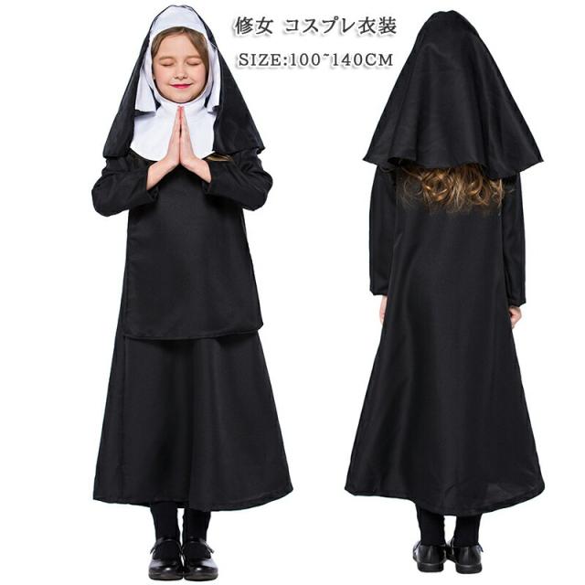 ハロウィン 仮装 衣装 子供 女の子修女 コスプレ コスチューム 仮装キッズ用コスチューム 修女 HALLOWEEN 親子レディースコスプレ ハロ ワンピースハロウィーン