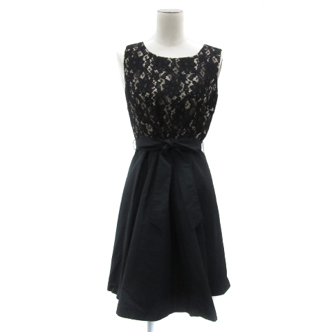 【中古】アンタイトル パーティードレス ワンピース ノースリーブ 花柄 レース 切替 2 黒 ゴールド色 レディース