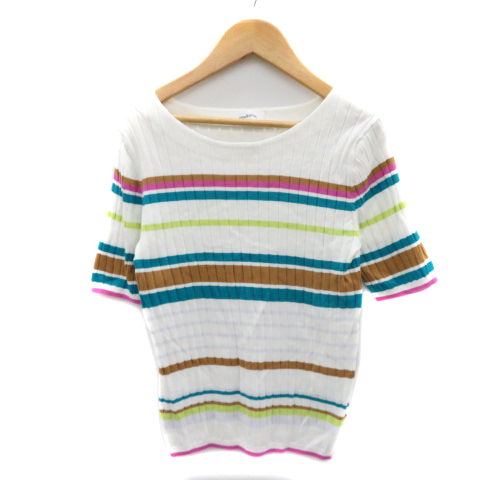 【中古】ニューヨーカー ニット カットソー 五分袖 マルチボーダー柄 M マルチカラー 白 ホワイト /YK23 レディース