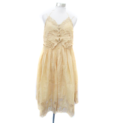 【中古】ザラ ZARA キャミソールワンピース Vネック ミモレ丈 アイレットレース M オレンジ
