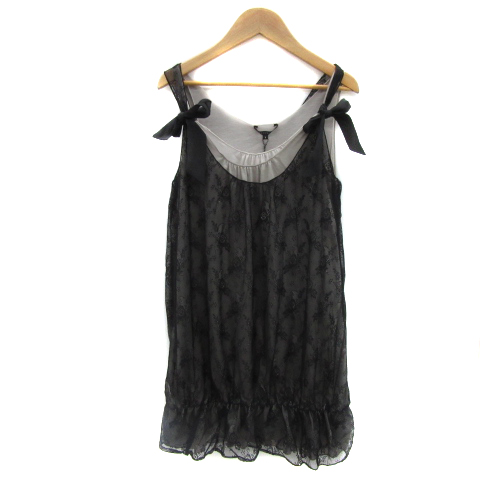 【中古】未使用品 マーキュリーデュオ パーティードレス ワンピース ミニ丈 花柄 レイヤード風 F 黒 レディース