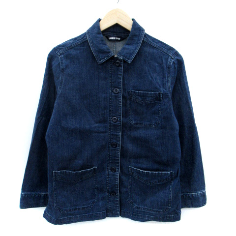 【中古】ランズエンド LAND'S END デニムジャケット カバーオールジャケット ミドル丈 M 青 ブルー /SM41 レディース