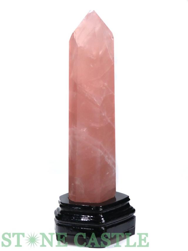 ☆一点物☆【置き石】ポイント型 ディープローズクォーツ (EX) 特大 (台付) No.06 ★特価★ 天然石 パワーストーン