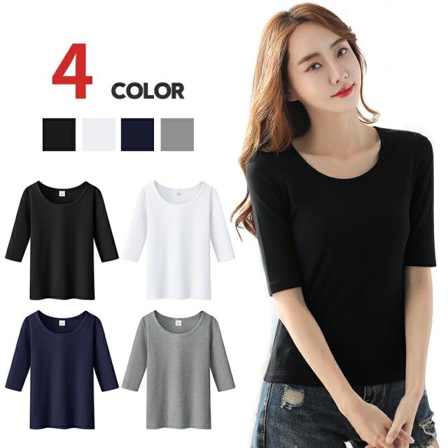 インナーTシャツ スクラブインナー スクラブインナーシャツ レディース アンダーウェア 七分袖 吸汗速乾 ストレッチ 医療 ナース 看護師 介護士 春夏 秋冬 おしゃれ 白 ネイビー ブラッ ホワイト