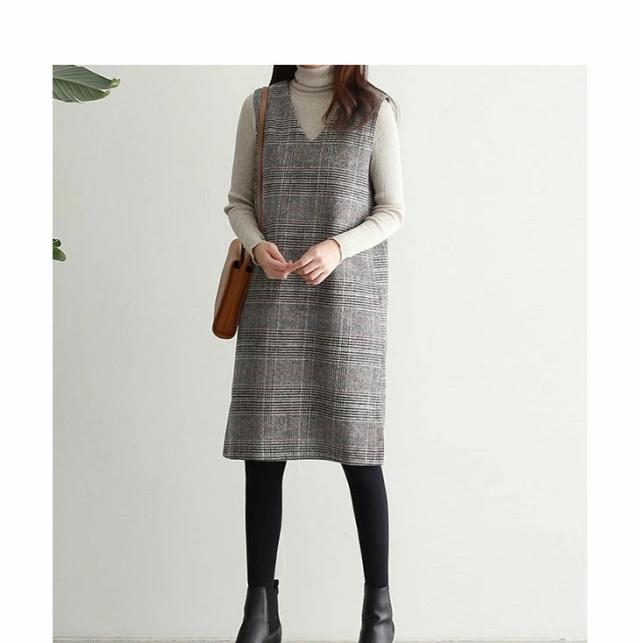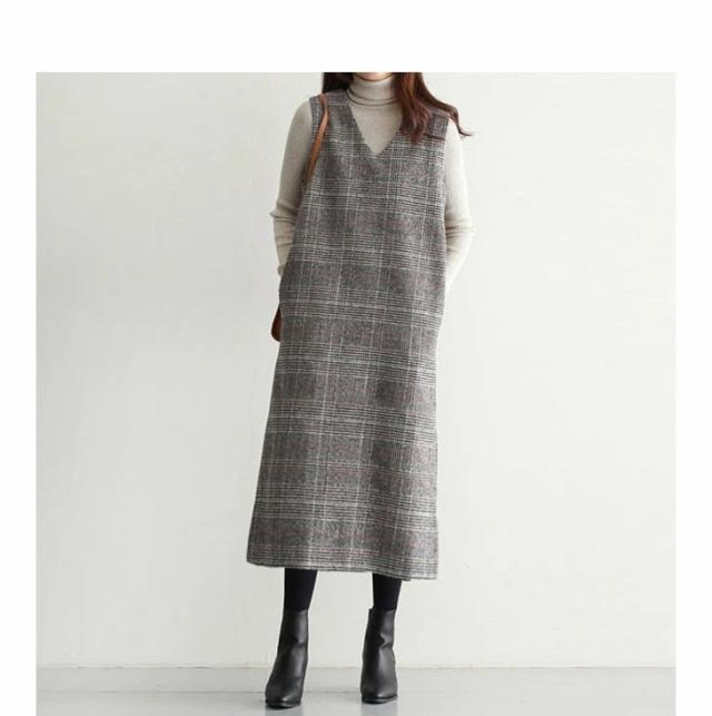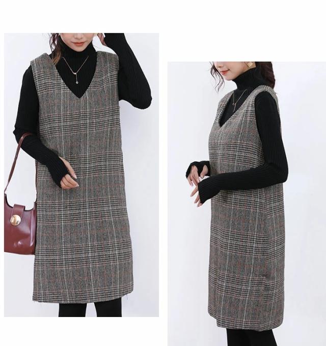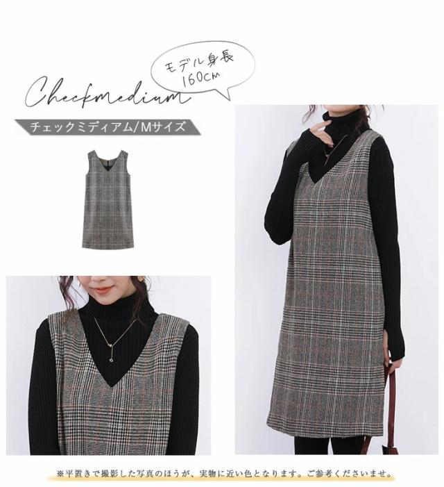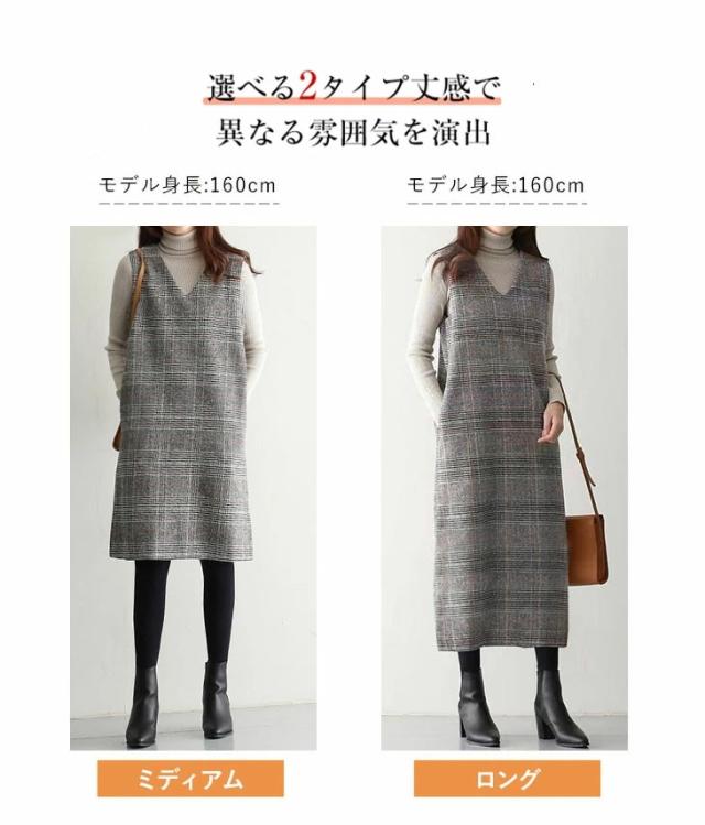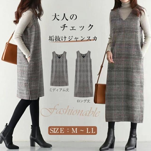 ジャンパースカート 選べる長さ ロング丈 ミディアム丈 スーツ レディース vネック オシャレ 50代 ロング 通勤OL おしゃれ チェック柄 カジュア 着痩せ