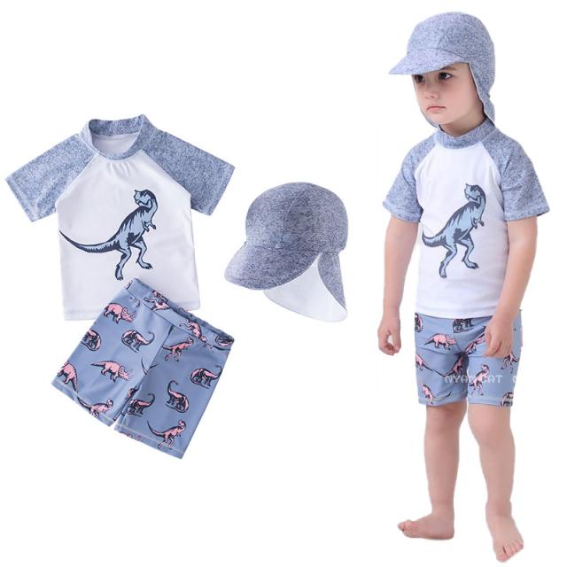水着 男の子 キッズ 上下セット セット 帽子付き 3点セット ダイナソー ラッシュガード スクール水着 ハーフパンツ セパレート 半袖
