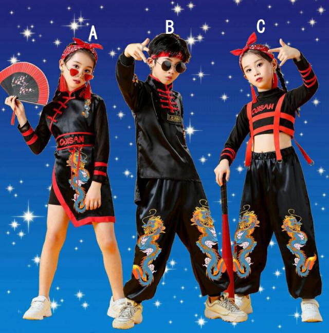 キッズ ダンス衣装 チャイナ服 子供服 チア チアガール ヒップホップ チャイナドレス jazz セットアップ ジャズダンス 女の子 中国風 ワンピース キッズダンス衣装 ダンスウェア ジ ストリート