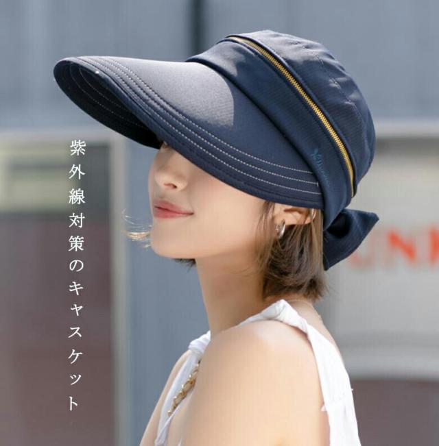 帽子 レディース キャスケット 完全遮光 uv UVカット サイズ調節可 つば広 折りたたみ キャスケットハット uvカット帽子 100% 飛ばない 日よけ 春 夏 あご紐 小顔効果 日焼 UV