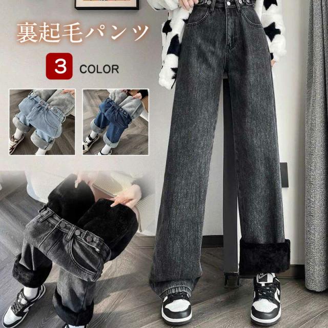 パンツ レディース デニム 裏起毛 ジーンズ あったかパンツ デニムパンツ ボトムス 厚手 ワイドパンツ ゆったり 暖かい ストレート ハイウエスト