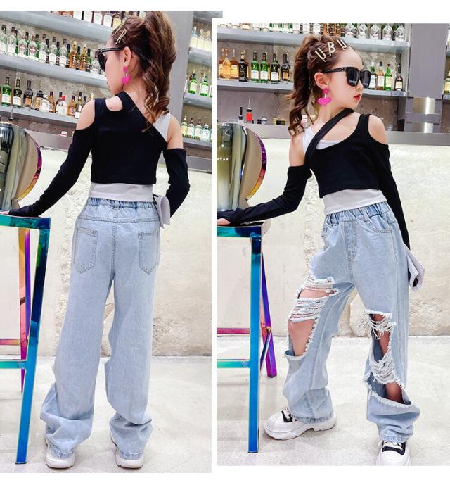 デニムパンツ キッズ ダンス セットア キッズ スーツ カジュアルセットアップ カジュアルスカートセット 続々入荷中 トップス1点 パンツ1点 トップス+パンツ 120 130 140 150 160 170