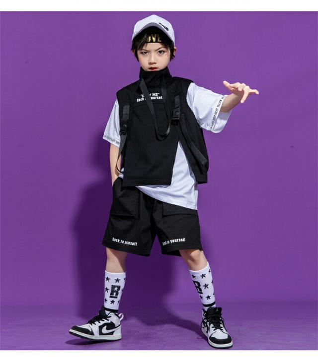 キッズ トップス ダンス衣装 カーゴパ キッズ ベビー マタニティ 新作 白Tシャツ1点 黒Tシャツ1点 黒ベスト+黒パンツ2点 緑ベスト+緑パンツ2点 110 120 130 140 150 160 170 180