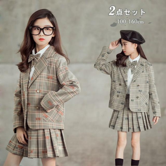 入学式 スーツ 女の子 ジャケット スカート リボン 卒園式 子供服 韓国 制服 セットアップ フォーマルスーツ 2点セット キッズ 長袖 入園式 発表会 七五三 結婚 卒業式
