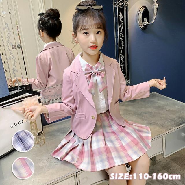 チェック柄 入学式 スーツ 女の子 ジャケット スカート 蝶結び 卒園式 子供服 韓国 制服 セットアップ フォーマルスーツ 2点セット キッズ 入園式 卒業式 発表会 長袖
