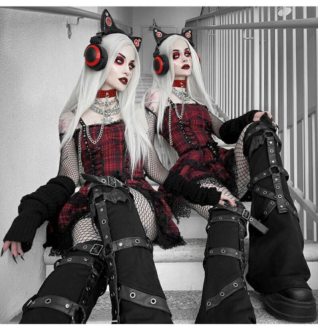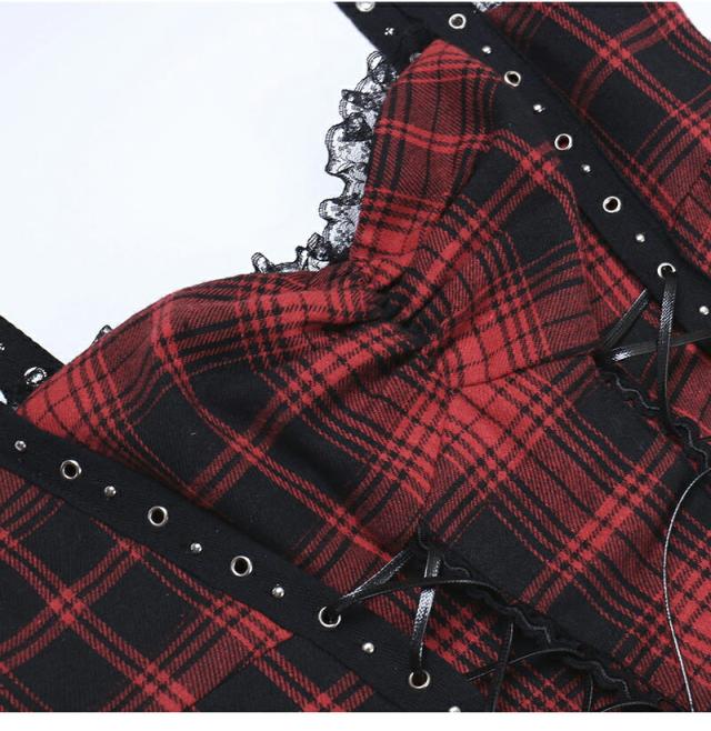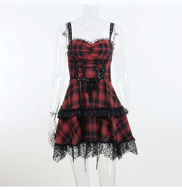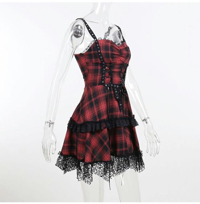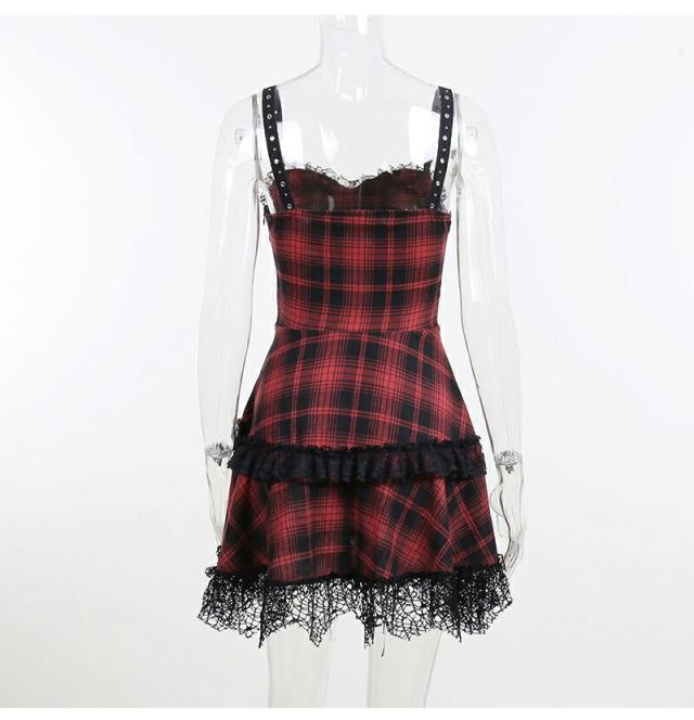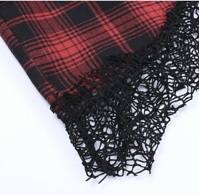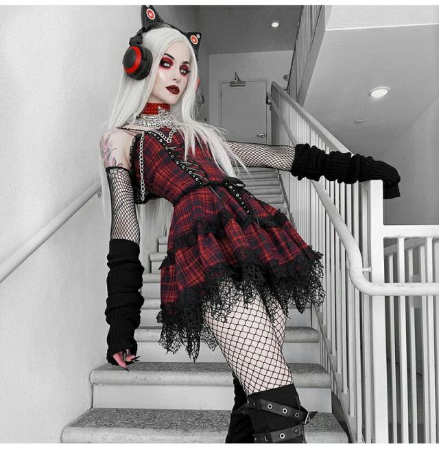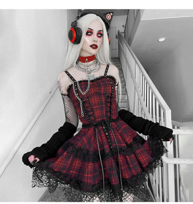 ハロウィン 魔女 衣装 コスプレ チェック柄ワンピース レディースセクシードレス 大人 ミニドレスス レース裾 暗黒 コスチューム ゴスロリ 仮装 悪魔 ゴシック 個性的 クリスマス ドレス