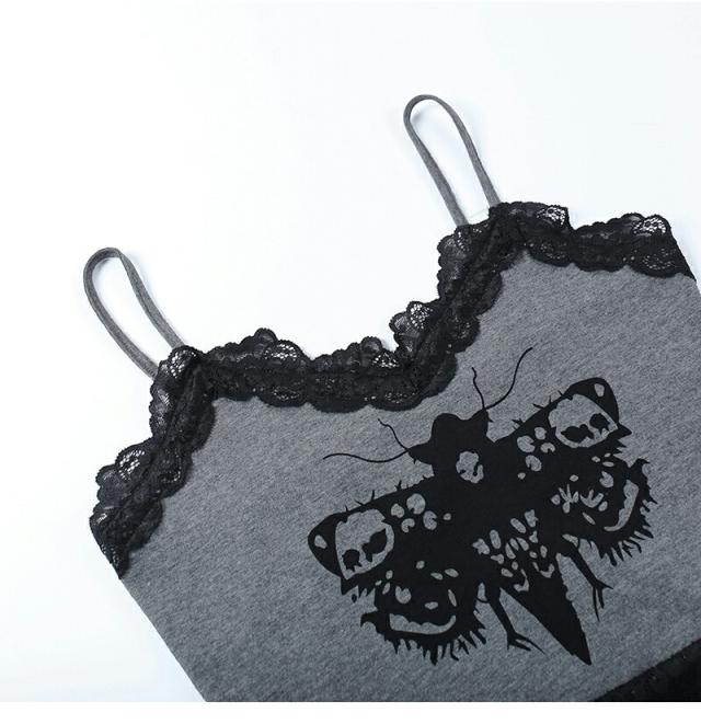 セクシーキャミソール レディースタンクトップ ハロウィン 魔女 衣装 へそ出し インナー フリル ダンス衣装 パンク ゴシック風 原宿系 ギャル系 ジャズダンス衣装 レース 欧米風 ハロ 個性トップス