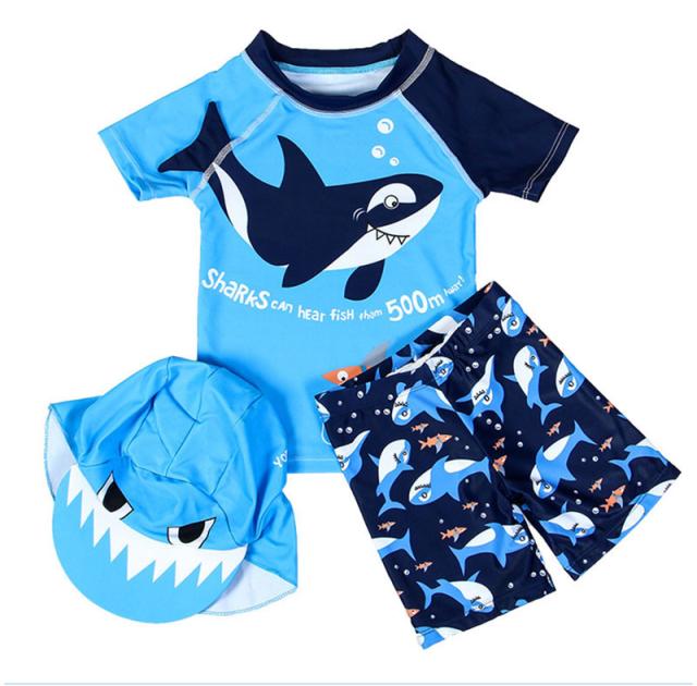 子供水着 キッズ 水着 帽子付き 3点セット ダイナソー 男の子 ラッシュガード ジュニア セット スイムウエア 半袖 スクール水着 ハーフパンツ かわいい