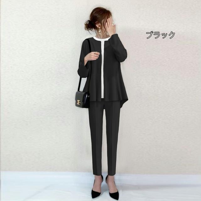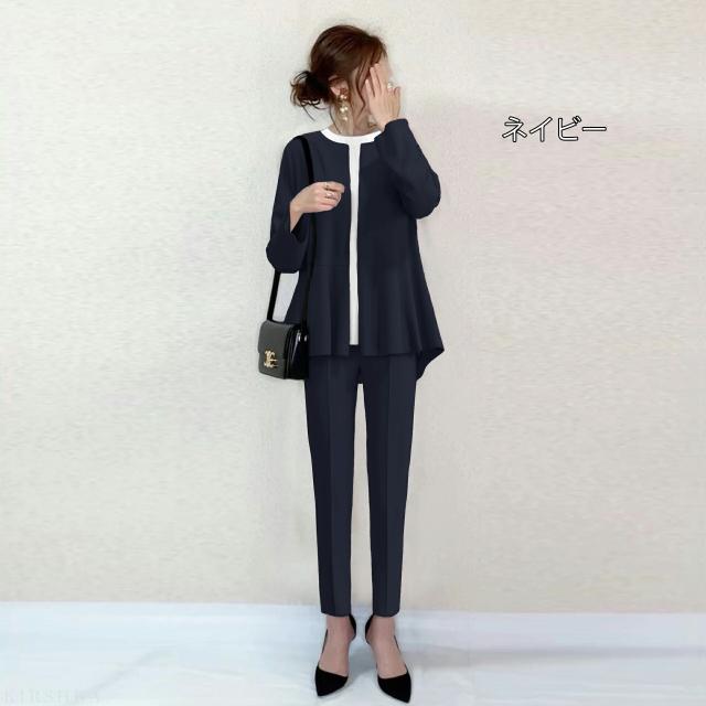 スーツ パンツスーツ レディース 春服 オフィス 長袖 セレモニースーツ ビジネススーツ 2点セット 入学式 ママスーツ セットアップ レディーススーツ フォーマルスーツ ロングパン 春