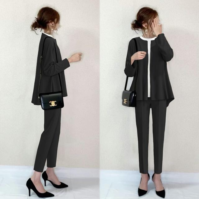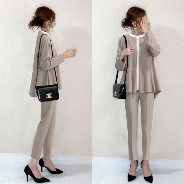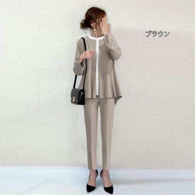 スーツ パンツスーツ レディース 春服 スーツ セットアップ パンツスーツ 人気 ブラック ブラウン ネイビー S M L
