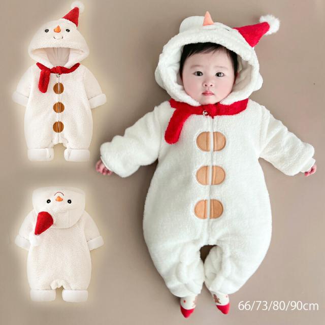 着ぐるみ ロンパース クリスマス 衣装 かわいい ベビー 裏ボア フード付き 雪だるま裏ボア ベビー服 新生児服 あったか カバーオール 男の子 女の子 ボア もこもこ 秋冬 ベビーウェア ふわ 寝袋