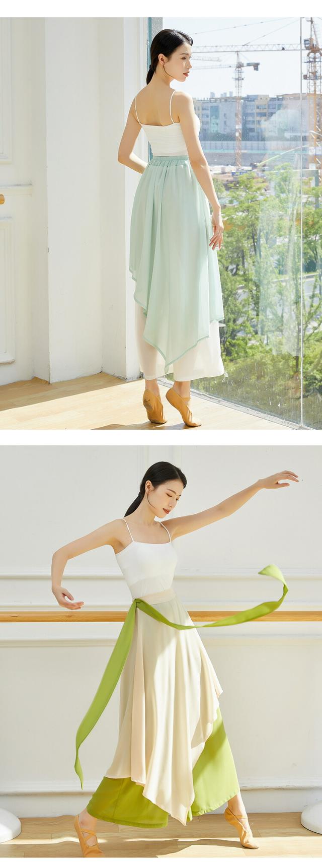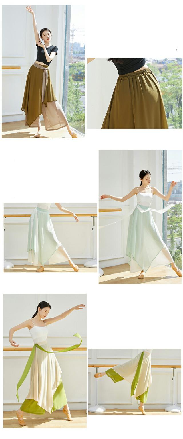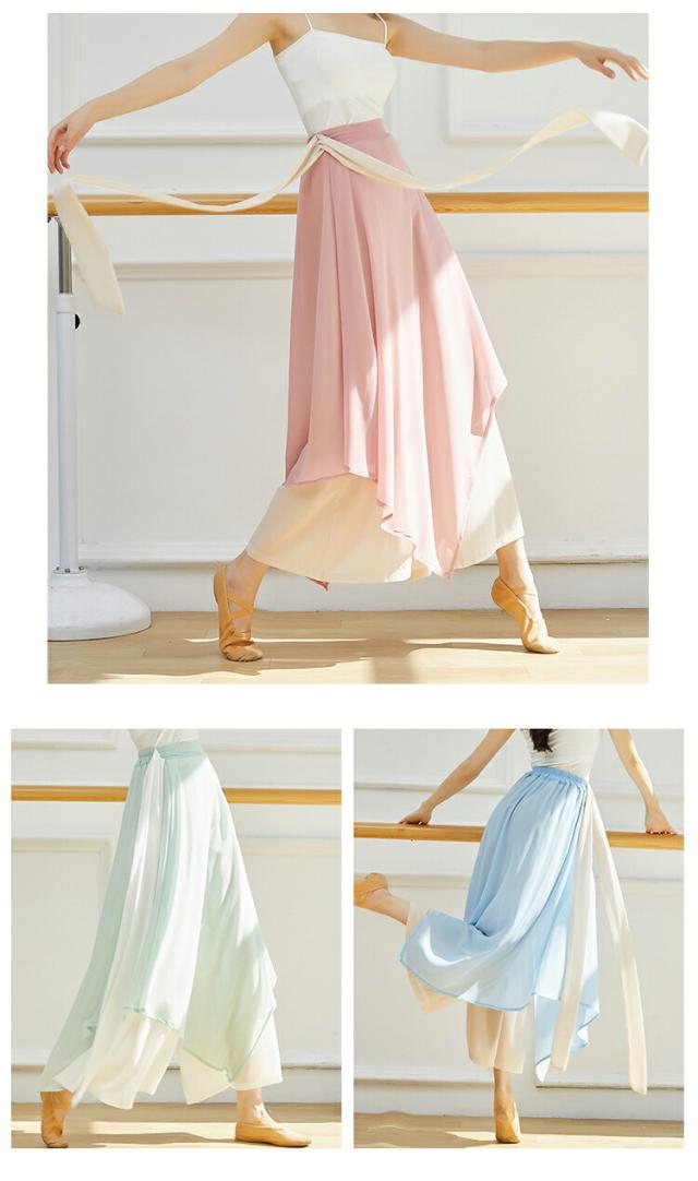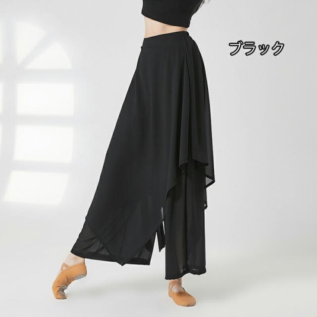 ダンススカート ダンス衣装 練習服 練習ウェア ワイドパンツ レディース ロングスカート 二層 ゆったり エレガント 綺麗 きれいめ ハイウエスト ミモレ丈 Aライン 着痩せ ウエストゴム シ 透け感
