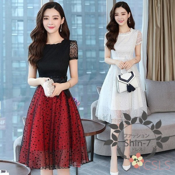 ワンピース 結婚式 レディース 半袖 膝丈 ワンピース レースワンピース フレアワンピース チュニック 2020春夏新作